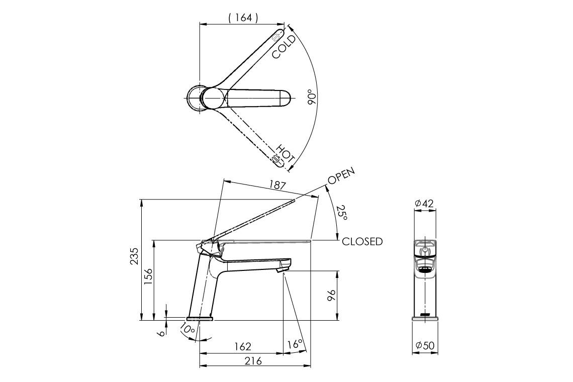 - Forward incline design - Allows a mirror to be installed behind the tap
