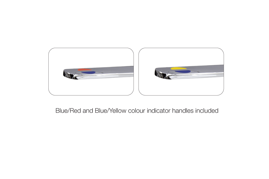 - Flexibility is provided to the facility by the inclusion of handles with blue/red and blue/yellow indicators