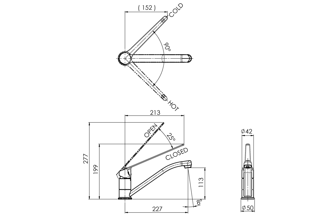 - Includes 3 Star WELS (8 lpm) aerator (fitted), 5 Star (5.5 lpm) and 6 Star WELS (3 lpm) aerators (supplied in carton)