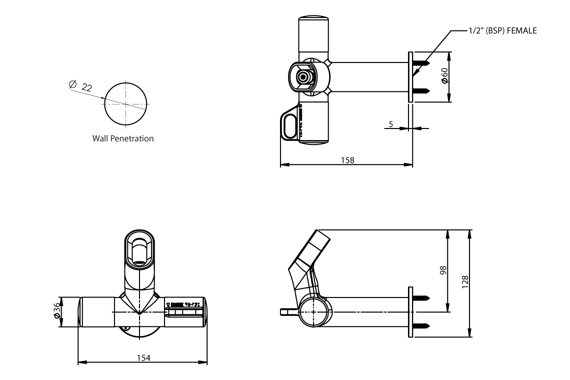 - 1/2" BSP (15mm)