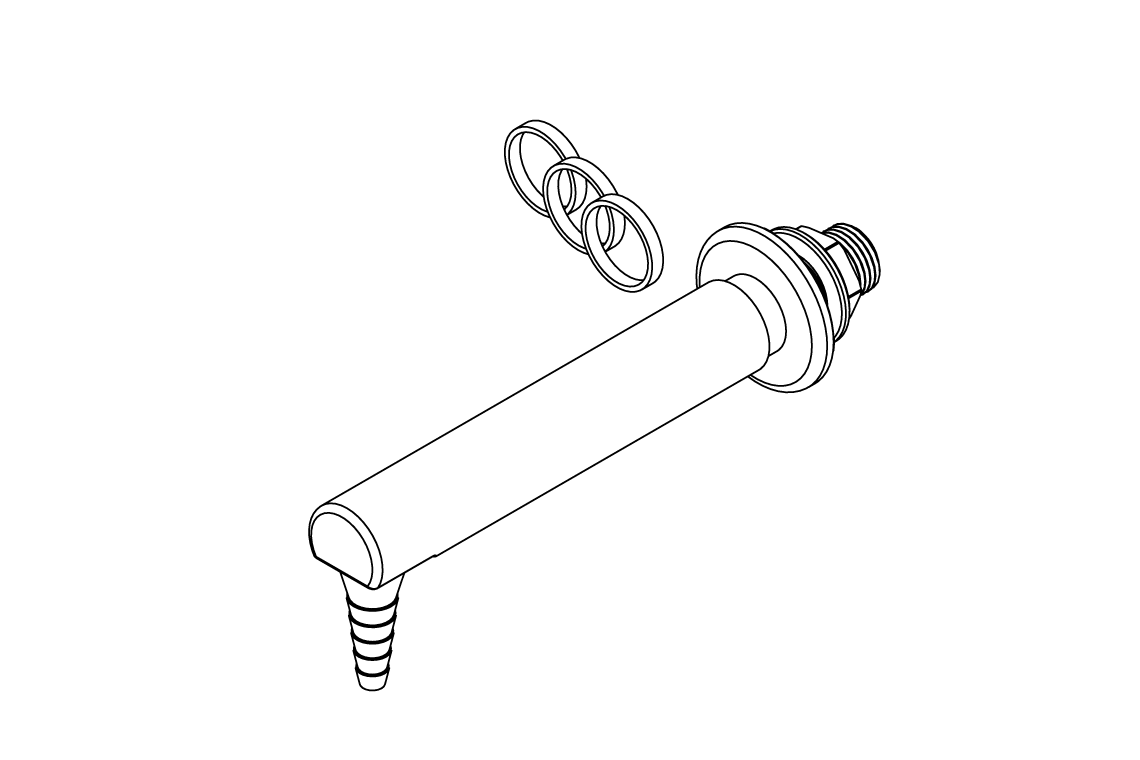 - Tube nozzle outlet with flow control and check valve. 3/8" BSP FI when removed