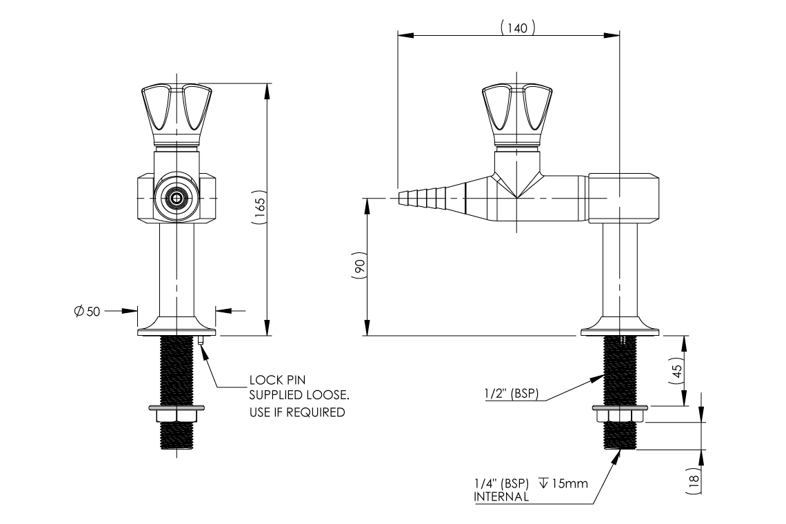 Enware Commercial Laboratory outlets are supplied with a tapered tube nozzle. The durable powder coat finish gives significant protection against corrosion, discolouration and surface damage. Colour coded metal handles are ergonomically designed for precise feel and fingertip control. Service identification indicator is supplied for compatible gas service types.