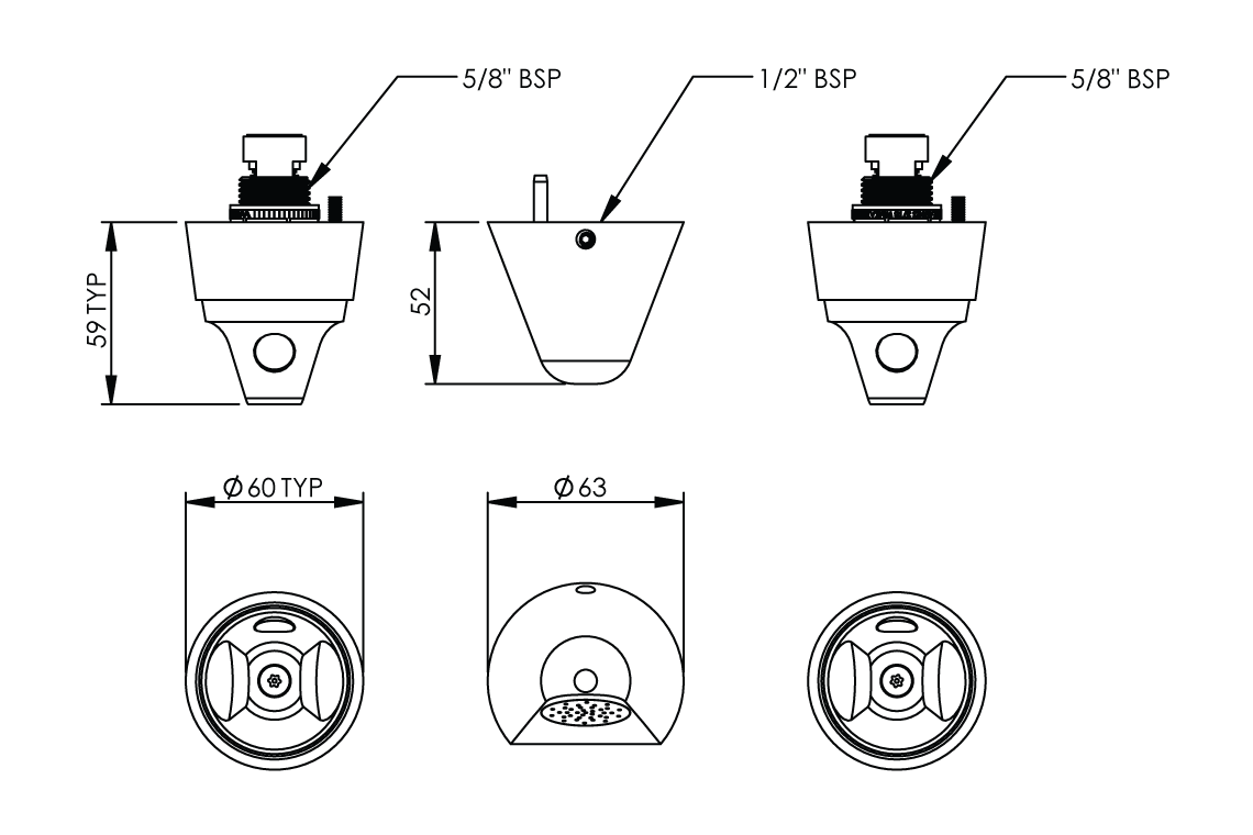 - The DET608 conical handle utilises a ceramic disc quarter turn valve
