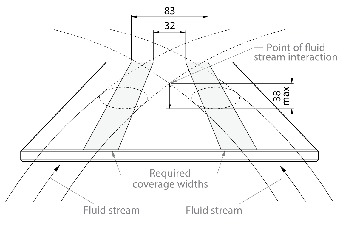 making determination of a suitable eyewash pattern shall be a minimum 102 mm in length