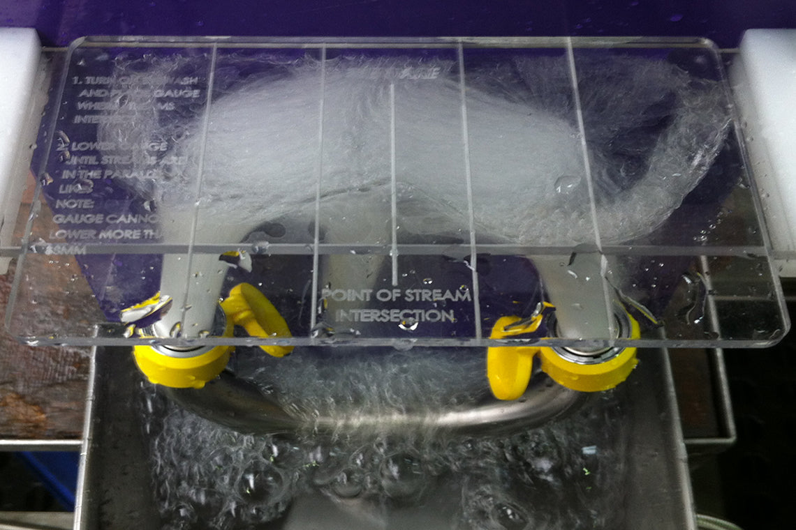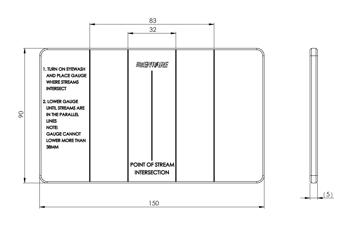 - Test gauge checks for correct eye wash fluid stream pattern for eye wash
