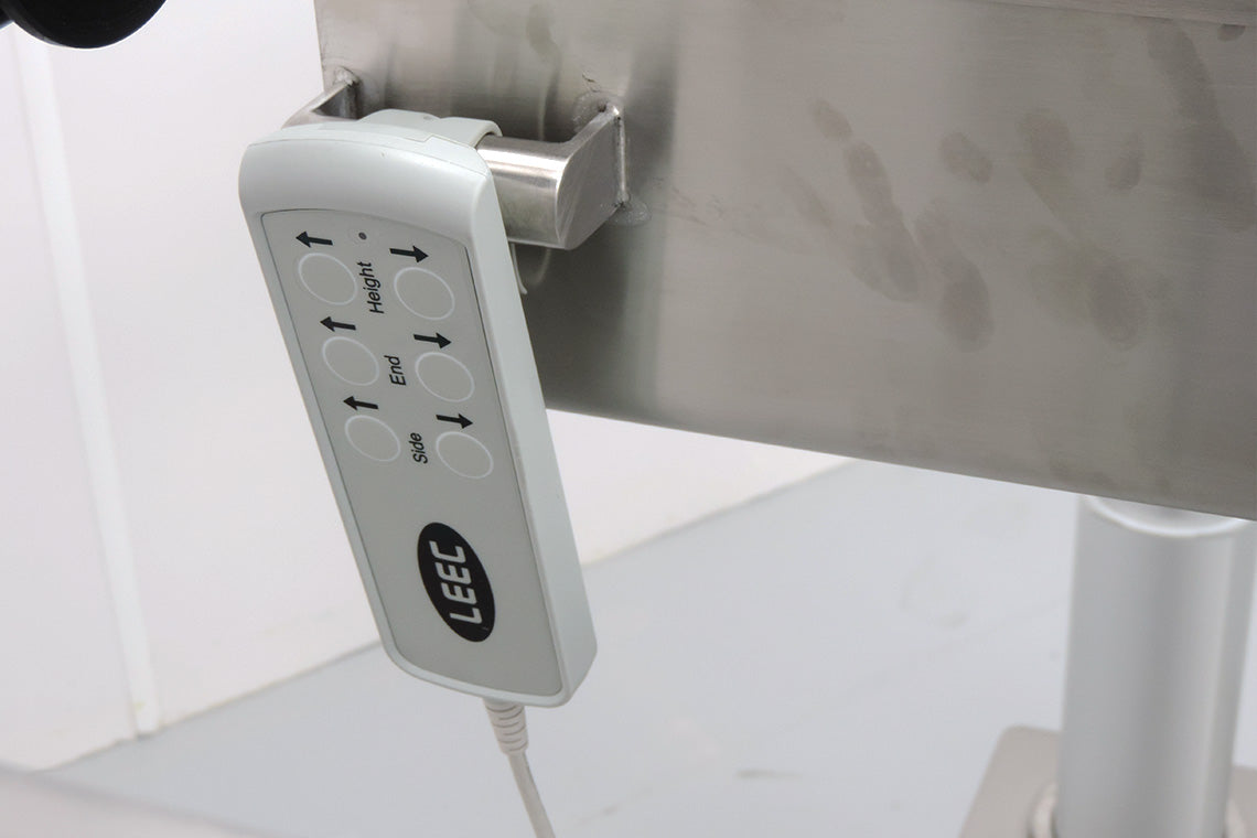 The Multi-tilt Table represents another technical leap forward for LEEC Anatomical Equipment, adding to an established and innovative line of solutions for University Medical Schools and Surgical Skills Centres. Featuring 4 high quality, uniquely programmed electrical actuators, the Multi-tilt Table has an impressive uniform vertical height range (900mm to 1240mm). Teachers, Laboratory Technical Staff and Students can work comfortably for extended periods, reducing the risk of back and neck strains. Tilt feature enables front to back and side to side operation, providing access to study and dissect the Cadaver, far beyond what is possible with a typical top-down dissection approach. Highly mobile with a two-point brake locking system, the Multi-tilt Table is used with LEEC’s Stainless Steel tray transfer system or as a fixed top option.