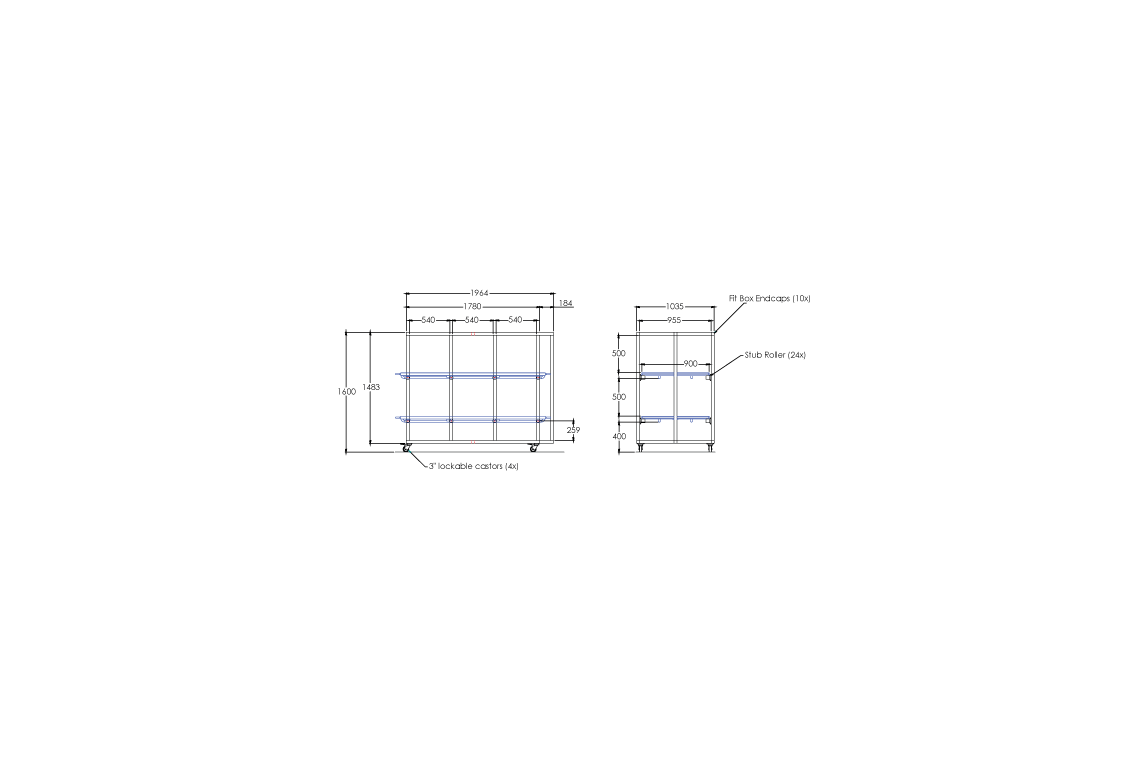 - Full width coffin rollers or tray rollers