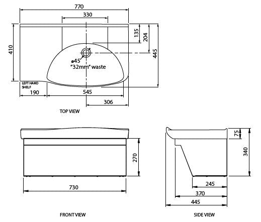 - Generous basin design eliminates joinery