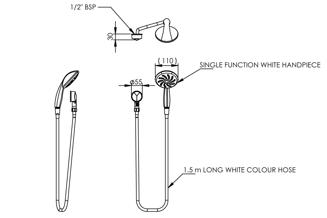 - Smooth 1.5m hose in chrome finish