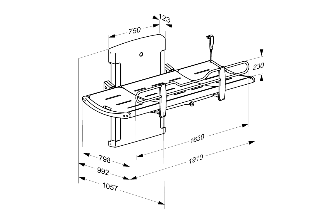 - Integrated gas cylinder enables bench to be easily folded against the wall to maximise floor space