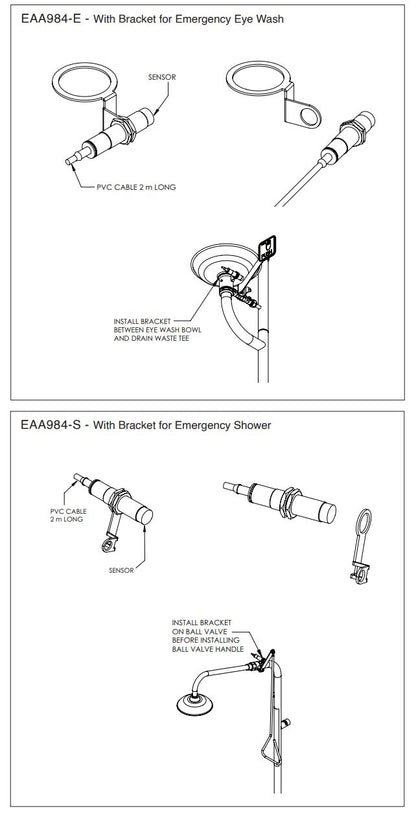 PRODUCT CODES EAA984 Proximity Switch Stainless Steel Detection Sensor EAA984-E Proximity Switch Stainless Steel Detection Sensor with Bracket for Emergency Eye Wash EAA984-S Proximity Switch Stainless Steel Detection Sensor with Bracket for Emergency Shower