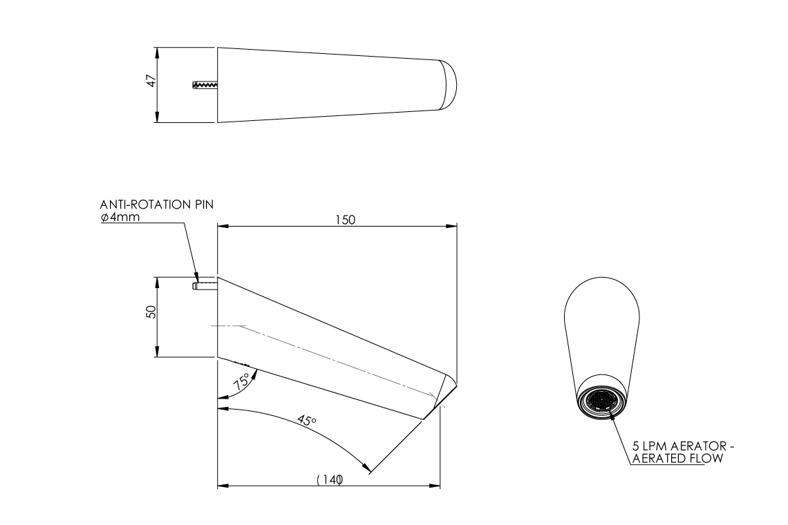 - Flow controlled 5lpm reaches into basin and provides clean drip line