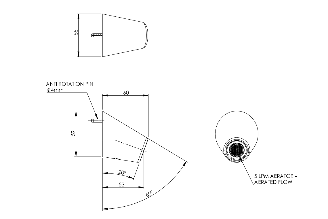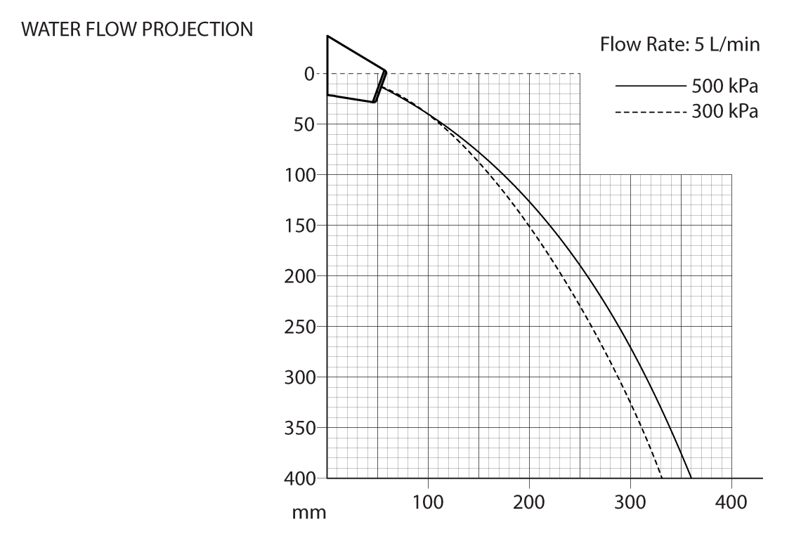- Flow controlled 5lpm projects water flow into basin and provides clean drip line