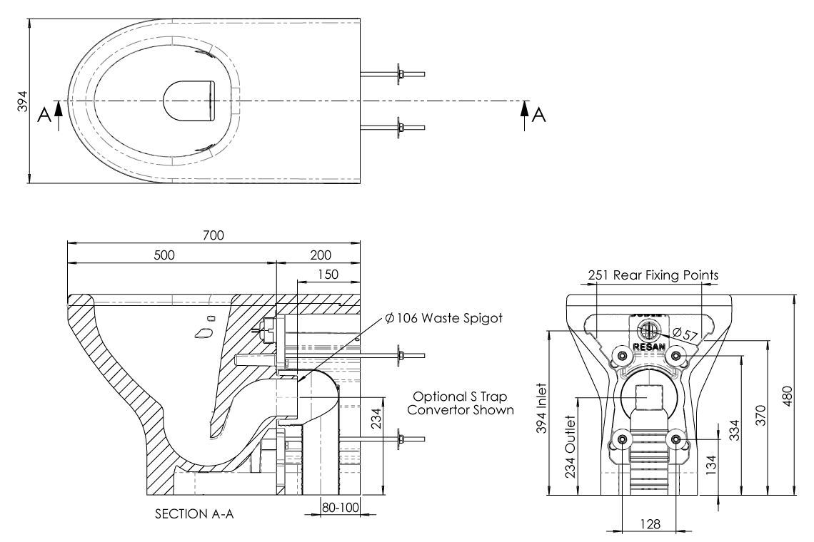 - Front of wall shrouded waste design and supplied with an S Trap convertor for ease of installation