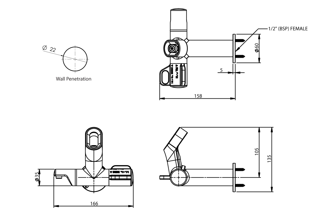 - 1/2" BSP (15mm)