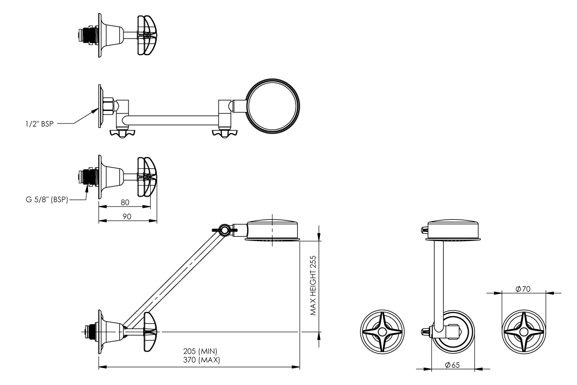 - Wall mounted all directional shower - 3 Star WELS (8 Lpm)