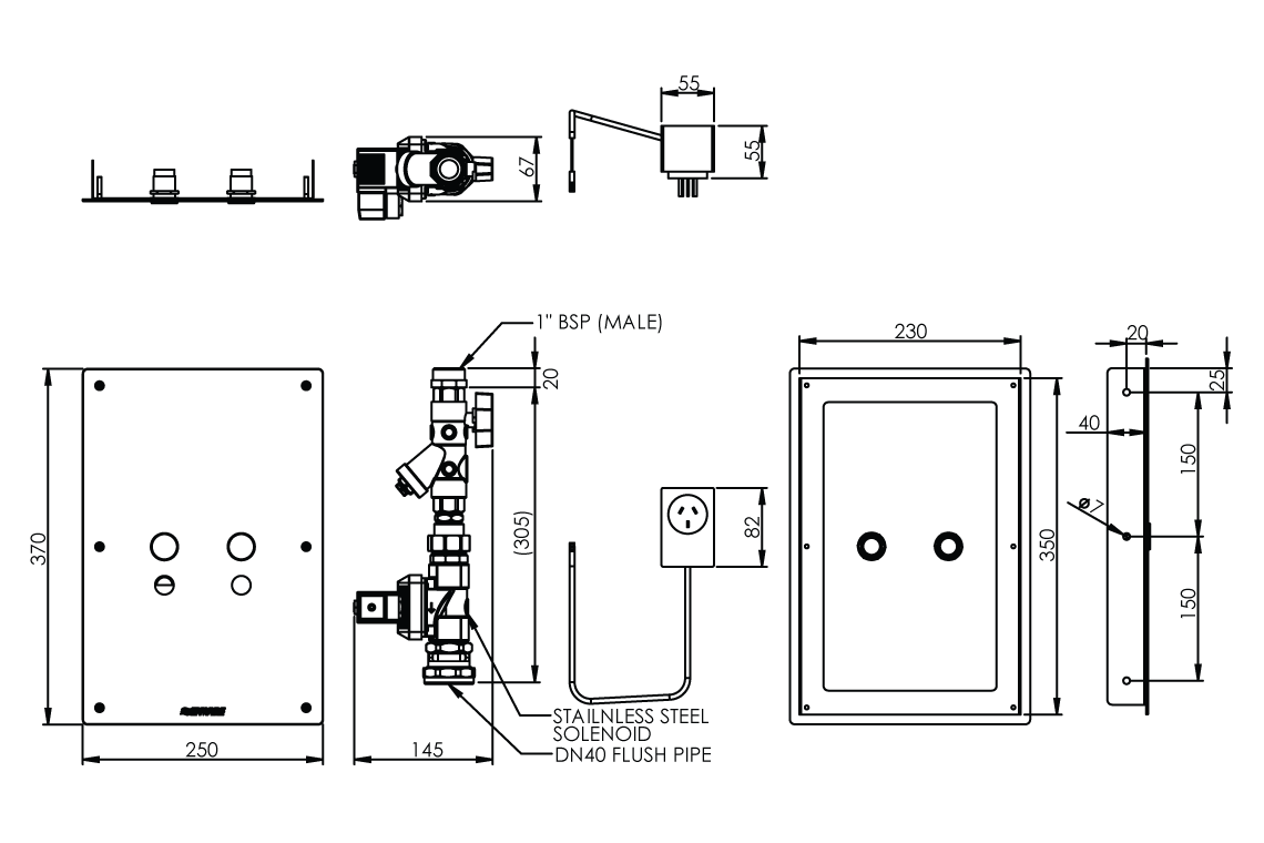 Enware’s WC flushing systems provide a neat and reliable flushing solutions using piezo electric technology- particularly suited for public access applications. Utilises a Water Marked solenoid that when combined with an appropriate pan delivers a 3/4.5L flush. Larger style brushed 304SS front flushing panel allows for front access where remote access is not available. Isolation ball valve, filter and airbreak included. Stainless steel panel is secured with torx anti-vandal screws. .