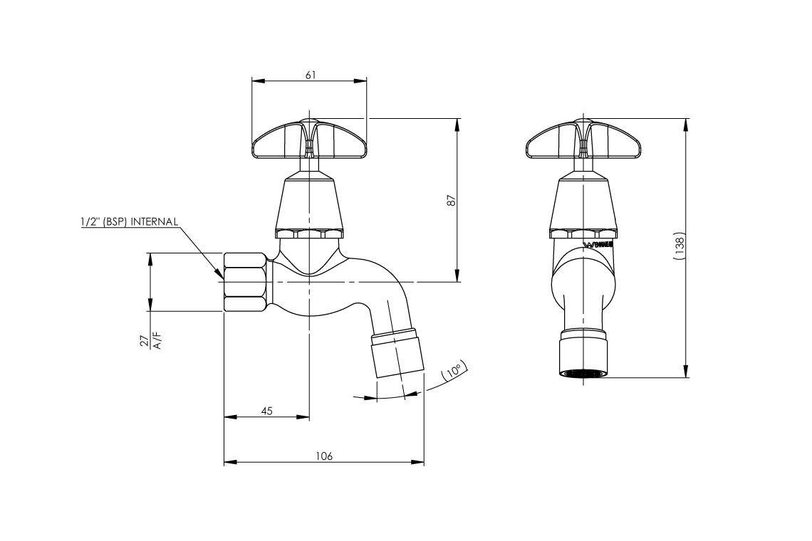 Type 47 Self Closing Bib Tap - Cam Action