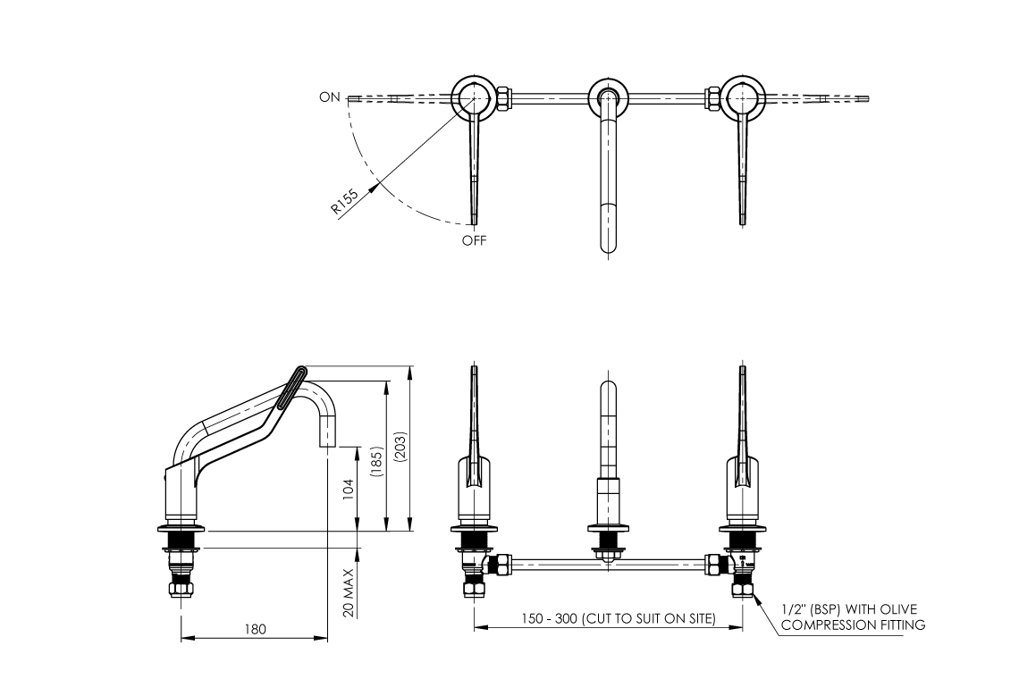 - Ergonomic sleek design 150mm lever handle ensures ease of use either by wrist or elbow