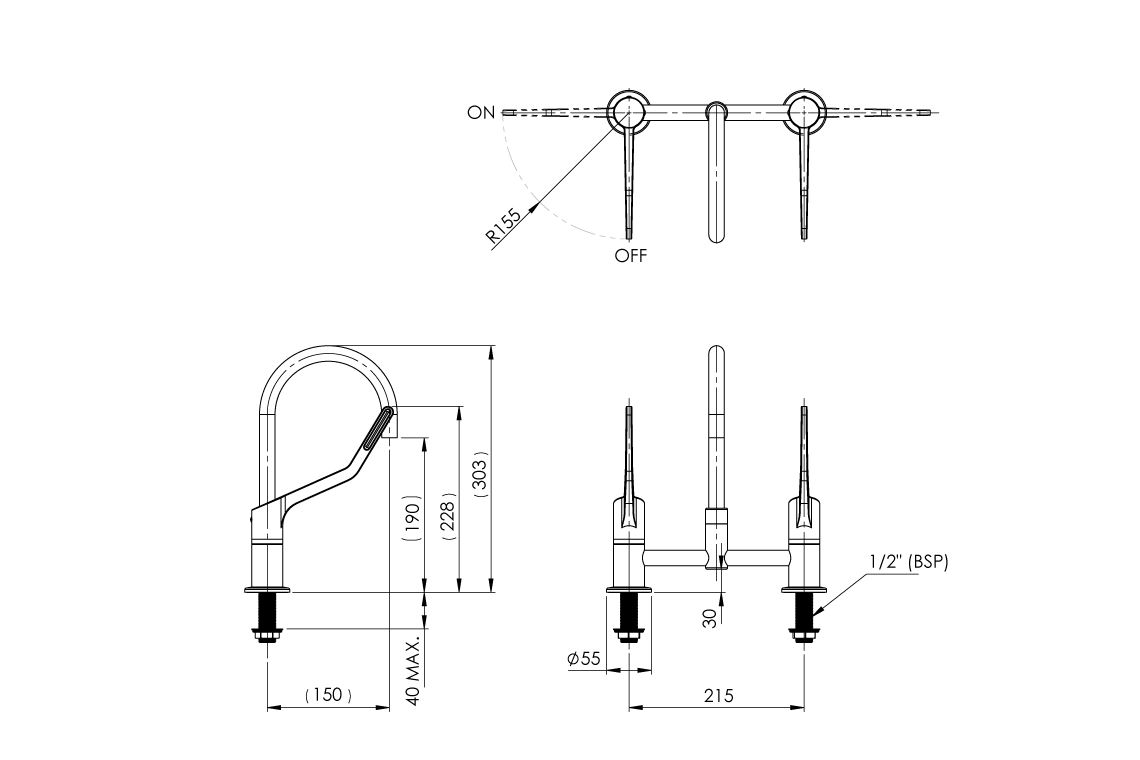 - Ergonomic sleek design 150mm lever handle ensures ease of use either by wrist or elbow