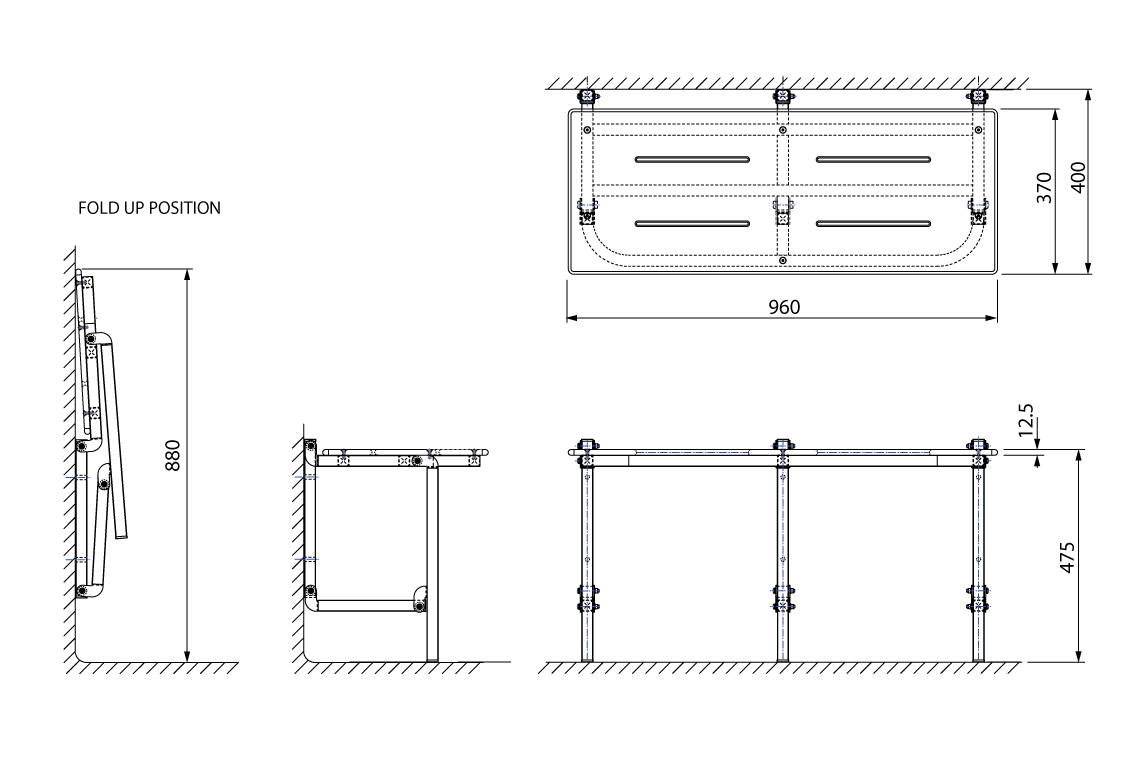 Wellbeing Bariatric Fold Down Shower Seat 960mm - Stainless Steel