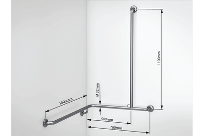 Wellbeing Grab Rail T-Shaped Shower - Corner Grab Rail - Right Hand - Brushed Stainless Steel