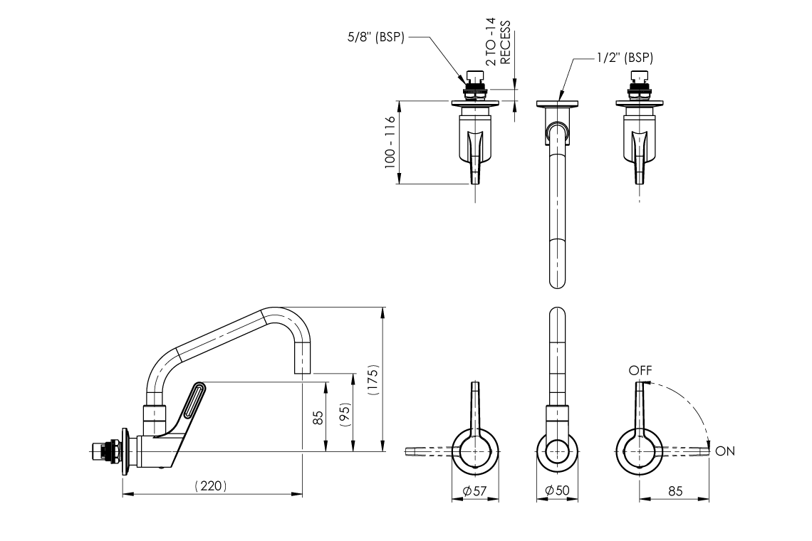 Wellbeing Leva 80mm Recess Wall Set with 220mm Wall Swivel Spout